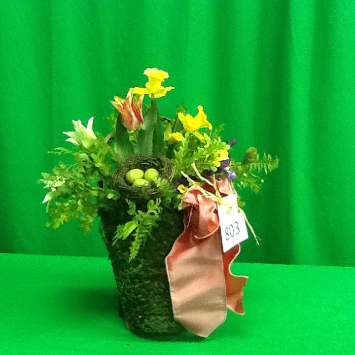 Add Spring to your door or anywhere in your home with this designer floral from 3 French Hens. The arrangement is a basket filled with florals, a nest, complete with a signature ribbon. A perfect Spring accessory for your home.